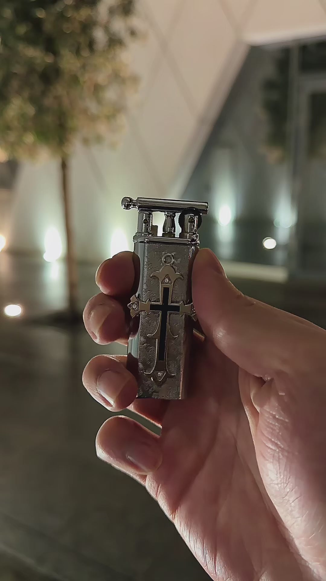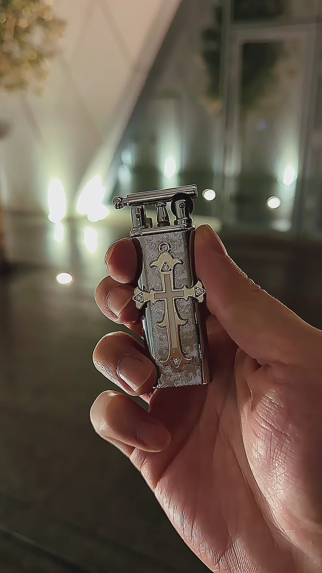 Sculpted in polished black steel and crowned with a raised silver cross, the Crucible Noir embodies the fusion of ritual and rebellion. Every etched detail in its metallic shell tells a story of resilience, a relic of fire shaped for the modern era.